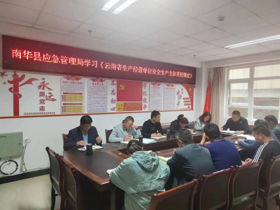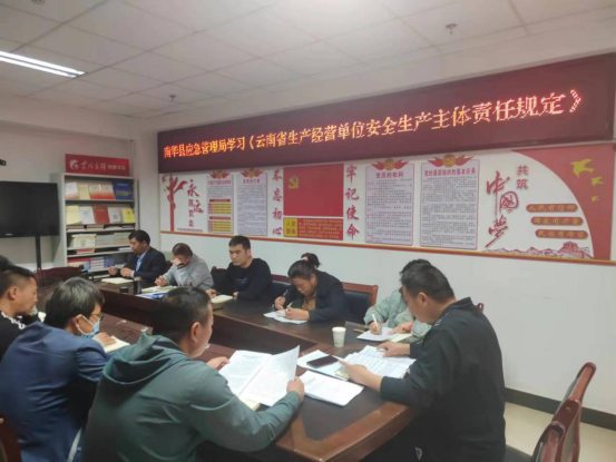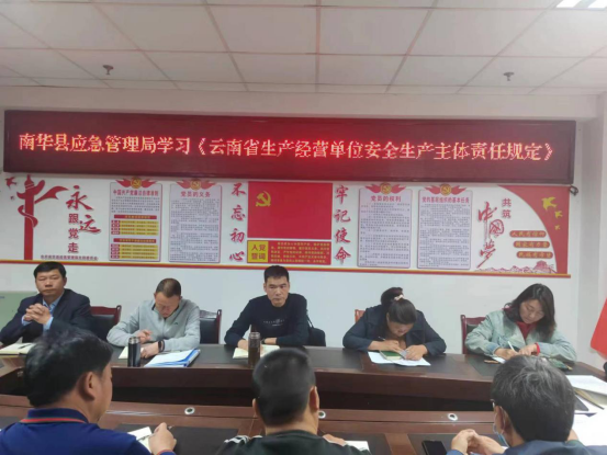 为强化和落实生产经营单位的安全生产主体责任,预防和减少生产安全事故,保障人民生命和财产安全。3月20日和27日,南华县应急管理局组织全体干部职工集中学习《云南省生产经营单位安全生产主体责任规定》(以下简称《规定》)。