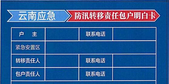 防汛转移责任“明白卡”应包括户主姓名及联系方式、撤离路线、转移责任人及联系方式、包户责任人及联系方式等。