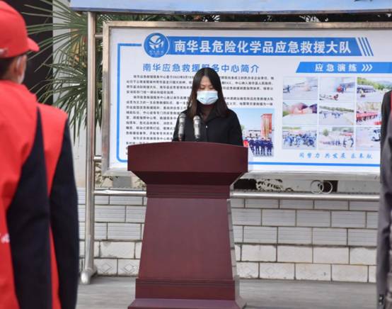 揭牌仪式上,纪菊丽同志代表县委、县人民政府对南华县危险化学品应急救援大队暨南华应急救援服务中心的成立表示热烈的祝贺,向辛勤战斗在应急救援工作战线的全体同志致以诚挚的慰问。