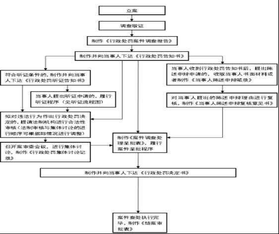 立案——调查取证——必要时进行听证——作出处罚决定——执行。