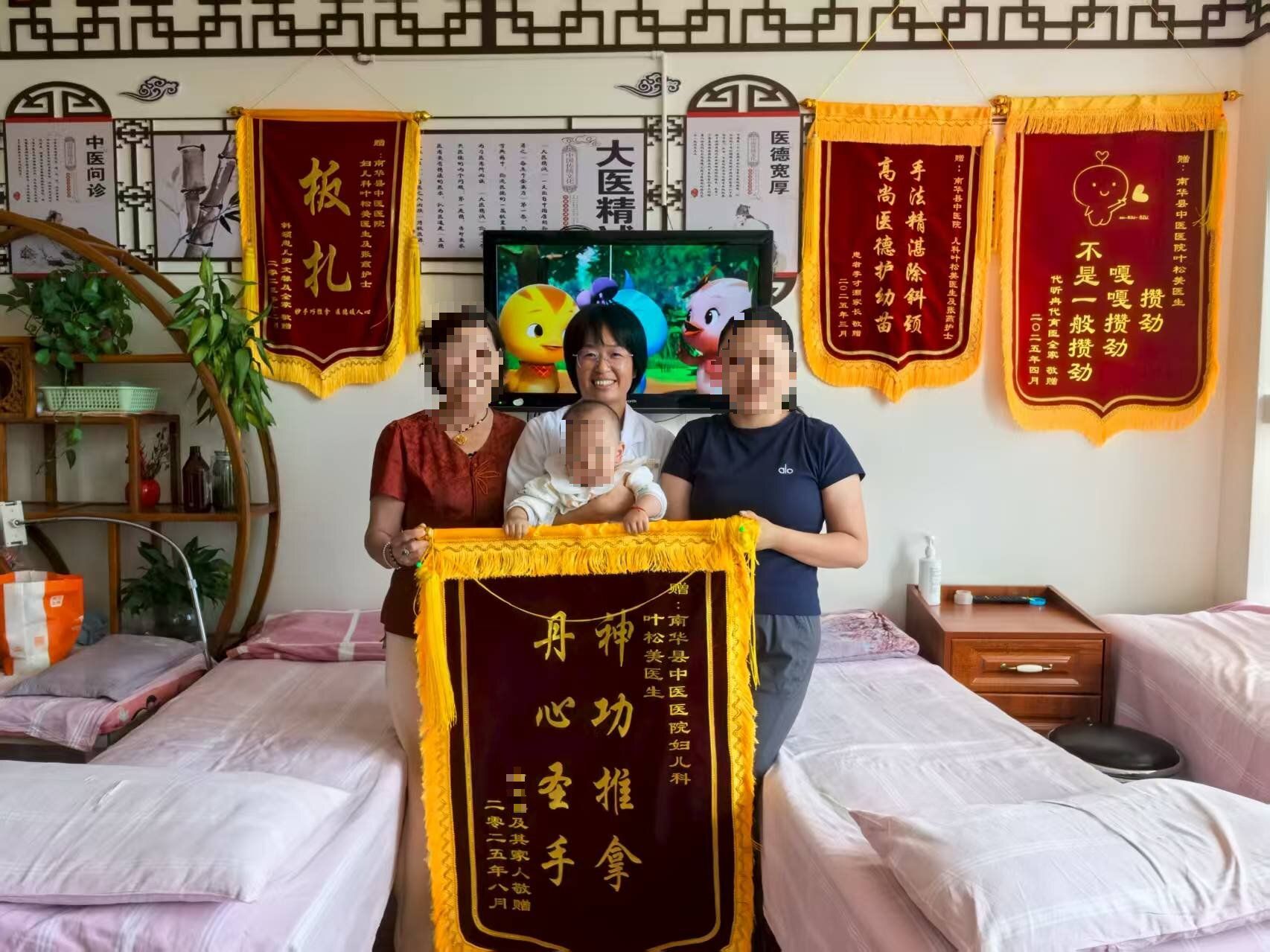 这份真挚的感谢,源于一次因中医推拿迎来的健康转机。此前,一名 3 个月大的患儿因斜颈出现头部持续偏斜症状,家长带孩子多方求医却收效甚微。经亲友引荐,他们抱着试一试的心态,来到南华县中医医院妇儿科,找到了深耕中彝医儿科推拿领域多年的叶松美医生。