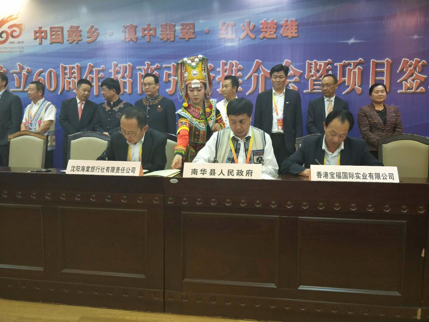 立足南华特色和实际,围绕生物医药大健康、旅游文化、新材料和绿色能源、先进装备制造、高原特色农业及绿色食品制造、轻工和商贸物流等重点产业,加强宣传推介,投资环境、服务效率不断提升,招商引资推介洽谈成果丰硕。4月15日,在楚雄州成立60周年招商引资推介暨项目签约仪式上,南华县人民政府县长何文明分别与沈阳海棠旅行社有限责任公司、杭州新九谷贸易有限公司等省外企业签订文化旅游、生物医药和大健康、现代物流等产业项目投资协议69亿元,其中:投资20亿元的南华沙桥岭景区建设项目,通过卓有成效的前期工作,积极有信的沟通对接,签订了正式合作协议,标志着我县又一重点招商引资项目落地并进入实施阶段。