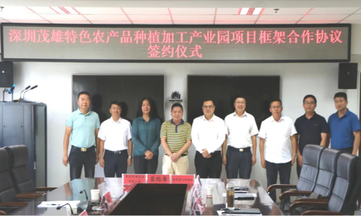 8月31日,我县与深圳茂雄集团签订特色农产品种植加工产业园项目框架合作协议。县委书记马特出席仪式并致辞,县委副书记王连波主持仪式,县人民政府副县长李春剑代表县人民政府与深圳茂雄集团副总经理李文财签订项目框架合作协议。深圳茂雄集团总顾问杨劲松、顾问李金镇及县农业农村局、县自然资源局、龙川镇、沙桥镇等有关单位领导参加仪式并见证签约。