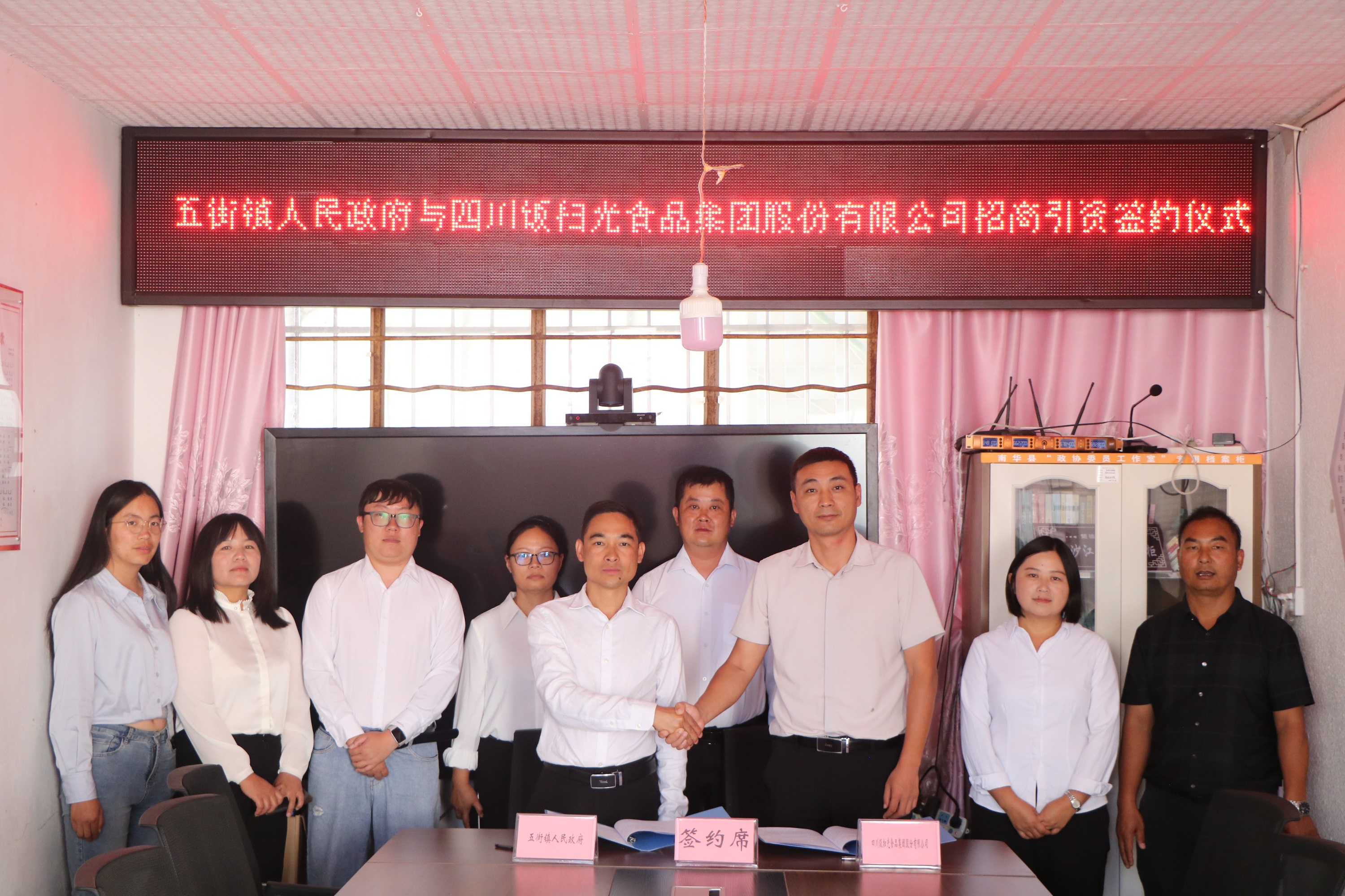 8月14日,五街镇人民政府与四川饭扫光食品集团股份有限公司完成招商引资签约仪式,为当地农产品加工产业注入了新的活力。此次合作标志着五街镇在推动农业产业升级、提高农产品附加值方面迈出了坚实的一步。