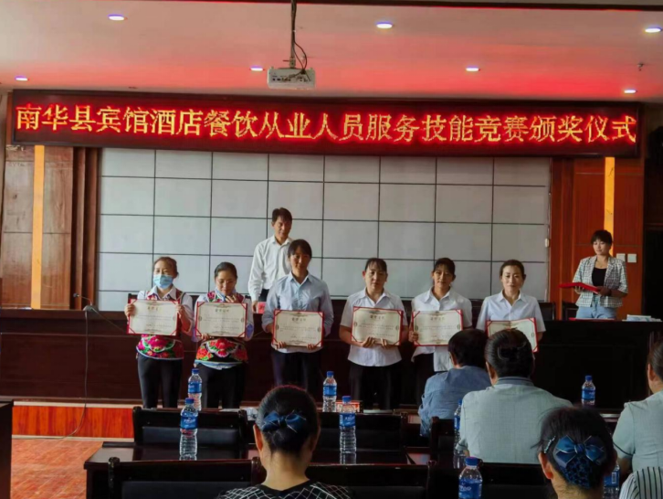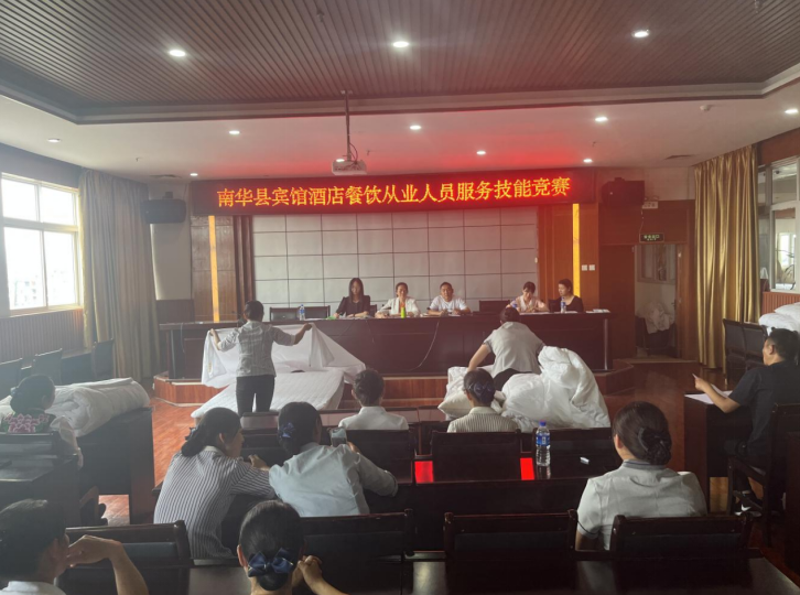 为提高南华县餐饮住宿业从业人员服务技能水平,提升南华县餐饮住宿业整体服务质量,继5月11日全县旅游服务从业人员服务礼仪暨服务技能培训之后,南华县“趁热打铁”于5月12日在镇南大酒店举办南华县餐饮住宿业从业人员技能竞赛。在检验培训成果的同时,为从业人员提供展示交流平台。