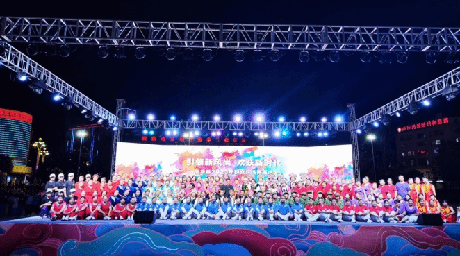 为深入学习贯彻党的二十大精神,弘扬传播社会主义核心价值观,积极组织广大群众开展健康向上的文化娱乐活动,形成良好的健身娱乐生活习惯,着力建设全民强健体魄和健康的身体素质,有力提高全社会凝聚力向心力,丰富全县广大群众的文化娱乐生活。9月27日晚,由南华县文化和旅游局主办、南华县文化馆组织15家文艺队在龙泉广场开展“引领新风尚 欢跃新时代”为主题的南华县2023年群众广场舞展演活动。
