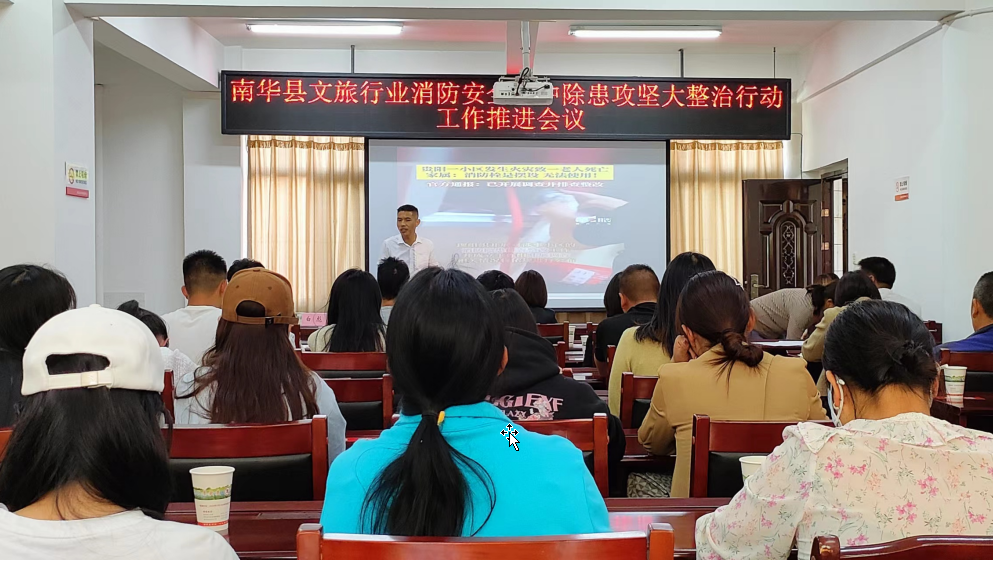 为进一步压实文旅行业安全生产工作责任,持续抓好全县文旅行业消防安全集中除患攻坚大整治及安全生产治本攻坚三年行动工作。4月18日下午,南华县文化和旅游局组织召开了南华县文旅行业消防安全集中除患攻坚大整治工作推进会议,全县35家文化和旅游经营单位负责人及我局相关工作人员50余人参加会议及大演练活动。