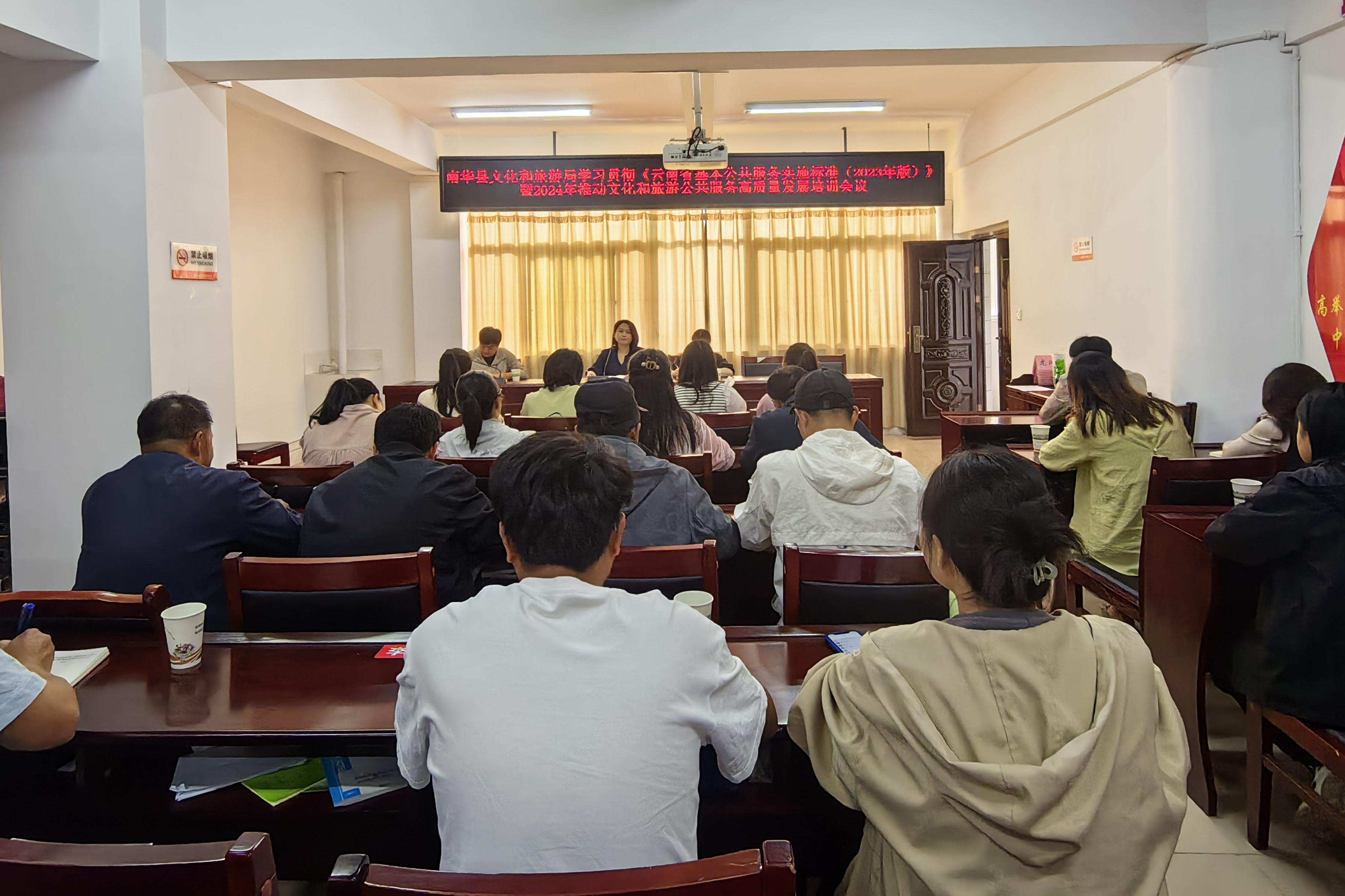 为贯彻落实文化和旅游部推进公共文化服务高质量发展工作会议精神,推动“十四五”时期公共文化服务体系建设创新发展,加强文化和旅游公共服务队伍建设,南华县文化和旅游局于2024年4月19日举办学习贯彻《云南省基本公共服务实施标准》暨2024年推动文化和旅游公共服务高质量发展培训班。