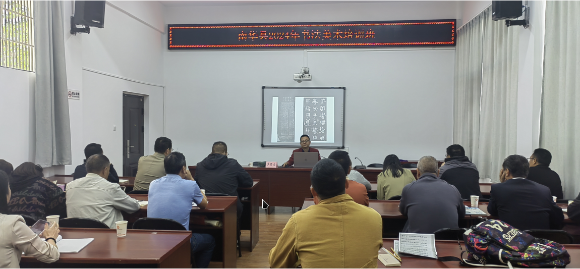 此次培训邀请楚雄师范学院教授、中书协会员谢怀方,楚雄技师学院教授、云南省书协副主席、中书协会员罗思宝,楚雄州美术家协会名誉主席、中国美术家协会会员周智,楚雄州美术家协会副主席、中国美术家协会会员梁春达,南华县美术家协会主席张建军,围绕中国书法简史、书法作品创作构成及经营位置、行书创作现场教学、草书创作现场教学、中国画简史;中国画山水画教学、中国画花鸟画教学、中国画人物画教学等方面开展培训教学,5位老师着眼于基层书法、美术爱好者需求,采取“实操培训+现场教学”培训模式,在交流互动中不断提升学员书法、美术爱好者理论知识和实践技艺,提高参训学员艺术水平。