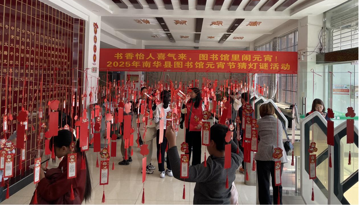 为弘扬中华优秀传统文化,丰富群众文化生活,让市民感受到浓厚的书香味和趣味性, 2月12日南华县图书馆举办了"书香怡人喜气来,图书馆里闹元宵"猜灯谜活动,让广大市民欢度一个温馨、愉悦的元宵佳节。