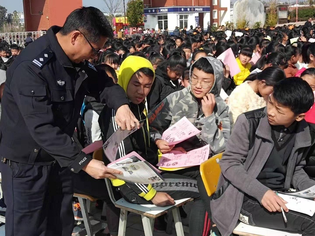 为加强学校安全管理,增强学生安全防范意识,建设平安和谐校园,3月9日上午,南华民族中学开展了“校园安全综合治理暨扫黑除恶进校园”主题教育活动,活动邀请南华县交警大队副大队长夏勇、王华,龙川派出所民警戴必旺到会做宣讲和指导,全体师生参与。