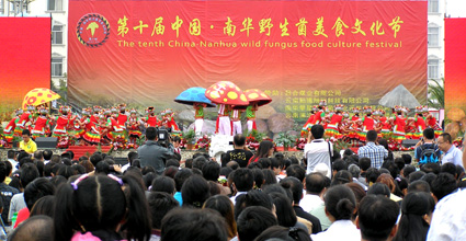 2013年8月9日上午, 第十届中国·南华野生菌美食文化节在县城龙泉广场举行文艺表演。