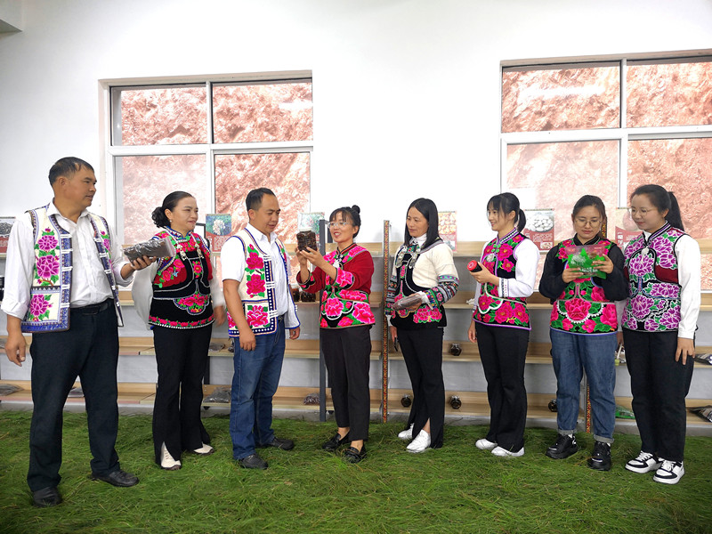 走过载歌载舞的长廊,“百菌园”展厅里萝卜干、贡菜干、大白芸豆、黑瓜子、大树核桃、土蜂蜜、树花、杨梅酱、菌汤包、高山玉米、七彩洋芋......琳琅满目的农特产品让人目不暇接,不少农特产品刚上架就被抢购一空。