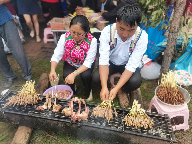 现场,还有琳琅满目的彝家美食让人垂涎欲滴,烤羊肉、阳麦粑粑、火烧洋芋等让游客体验到最原生态的美食。