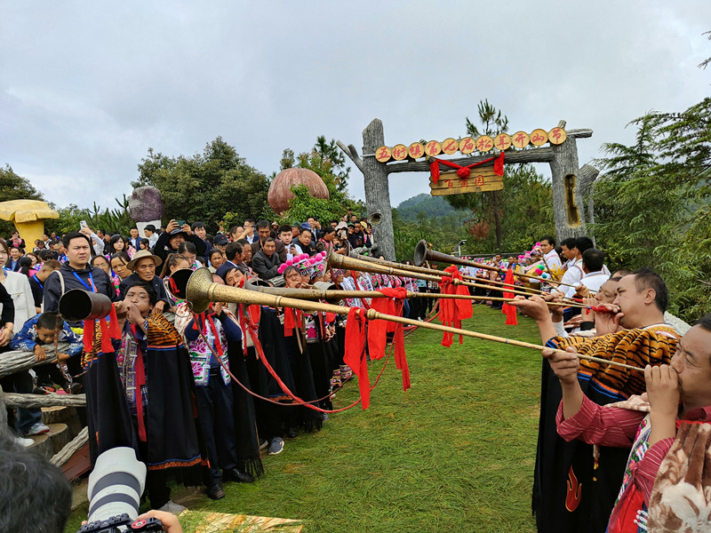 开山节现场,宾客满棚。群众和宾客对起山歌,跳起左脚舞,一起狂欢、一起表达对大自然慷慨馈赠的感激和丰收的喜悦,不管什么民族、什么年龄、什么地方的人,都被气氛感染,不由自主参与其中,流连忘返。