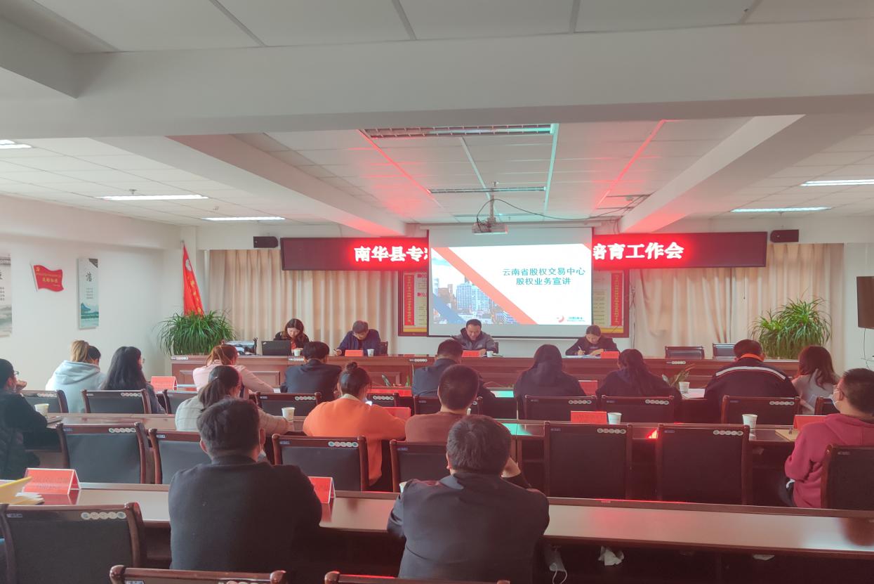 2022年5月17日,南华县工信商务科技局,邀请州工信局领导及州中小企业公共服务平台、贵州兴黔财富资本管理有限公司专家到我县开展2022年专精特新企业资本市场培育活动。我县精心组织动员了楚雄州吕合煤业有限责任公司、南华茂森再生科技有限公司等13户企业负责人及财务负责人等参加活动。