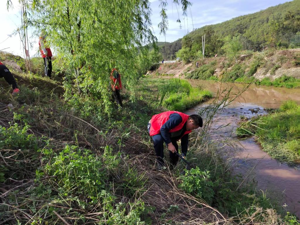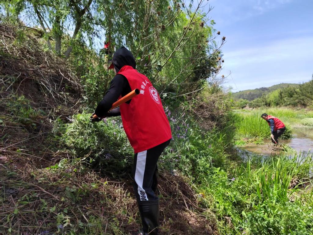 活动当天,全体干部职工顶着烈日,激情高昂来到任务河段,大家发扬不怕苦、累、脏的吃苦耐劳精神开足马力、铆足干劲迅速投入到打捞水面漂浮物、清运沿岸乱堆垃圾、清除非法种植物、清除杂木杂草根枝、改善河道沿岸面貌的活动中,对河道内的垃圾杂草、枯枝烂叶、塑料制品等废弃漂浮物和河道内沉积的垃圾、淤泥等进行了全面清理,历时5个多小时清理并搬运河道两侧150多米内杂木杂草农作物秸秆等垃圾近5吨,河道两岸焕然一新。