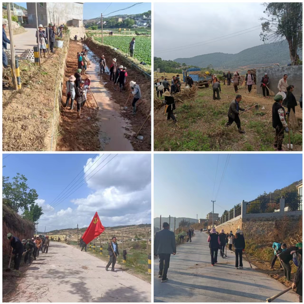 本次大清扫行动由全镇1700名党员带头、100多名志愿先行、19个村村民全员出动清扫各村卫生死角。本着不放过一个盲区、不留一个死角原则,巩固人居环境整治提升成果,确保村容村貌干净整洁,本次大清扫行动重点清理进村道路两旁的排水沟、进村路面清扫、农村生活垃圾、村内塘沟、“五堆十乱”、河道淤泥、村庄道路沿线卫生进行全面清理整治。无论是沿街路面还是乡间小道,到处可见忙碌的身影,到处都是火热的劳动场面。