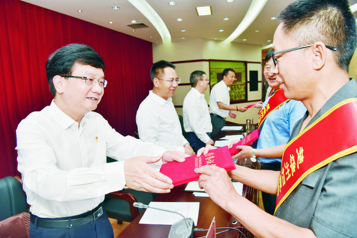 全州扫黑除恶专项斗争总结表彰大会上,州委书记杨斌,州委副书记、州政府党组书记张文旺等领导为受表彰的先进个人代表颁奖。(本报记者 王 洪摄)