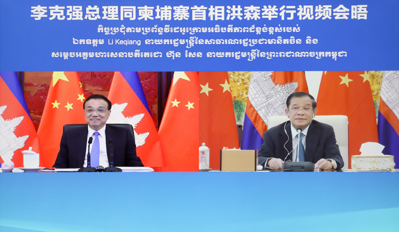 李克强表示,中柬互为近邻,传统友谊深厚,各领域务实合作持续推进。中方高度重视发展中柬关系。首相先生在去年中国疫情最严重的时候如约访华,习近平主席同你会见。你的访问体现了柬方对中国人民抗击疫情的支持。中方将一如既往支持柬埔寨走符合本国国情的发展道路,愿继续为柬方防控疫情、复苏经济、改善民生提供力所能及的支持和帮助。