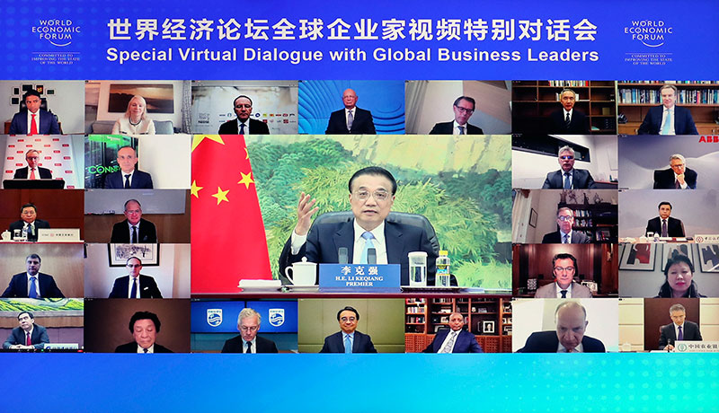 新华社北京11月17日电 国务院总理李克强11月16日晚在人民大会堂出席世界经济论坛全球企业家特别对话会,发表致辞并同企业家代表互动交流。对话会以视频方式举行,世界经济论坛主席施瓦布主持,来自40多个国家的近400位企业家参加。