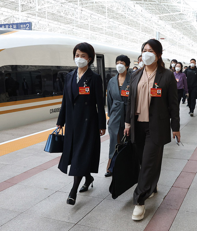 10月13日,来自内蒙古自治区的党的二十大代表乘高铁抵达北京北站。新华社记者 张玉薇 摄
