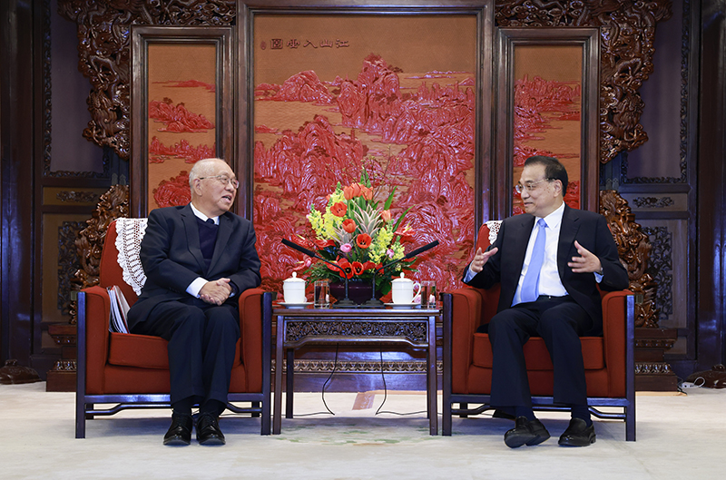 2月24日,国务院总理李克强在北京中南海紫光阁会见国际著名数学家丘成桐先生。新华社记者 丁林 摄