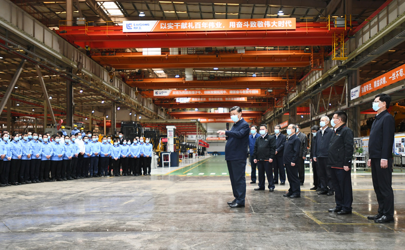 当天下午,习近平来到柳州市考察调研。在广西柳工集团有限公司,习近平先后走进公司展厅、研发实验中心、挖掘机装配厂等,听取企业发展情况介绍,察看主要产品展示,同企业职工和技术研发人员亲切交谈。习近平强调,制造业高质量发展是我国经济高质量发展的重中之重,建设社会主义现代化强国、发展壮大实体经济,都离不开制造业,要在推动产业优化升级上继续下功夫。只有创新才能自强、才能争先,要坚定不移走自主创新道路,把创新发展主动权牢牢掌握在自己手中。要坚持党对国有企业的全面领导,坚持加强党的全面领导和完善公司治理相统一,在深化企业改革中搞好党的建设,充分发挥党组织在企业改革发展中的领导核心作用。