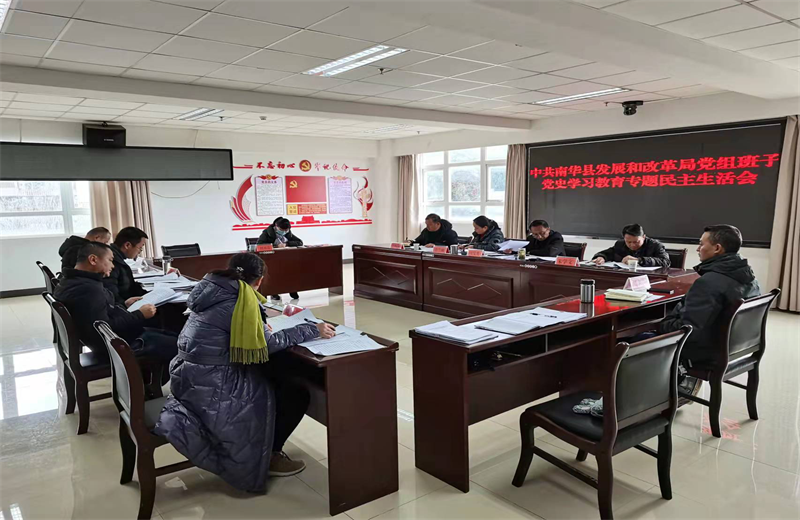 1月21日,南华县发改局党组班子召开党史学习教育专题民主生活会。县委党史学习教育第十巡回指导组、县纪委县监委驻县发改局纪检组领导到会指导。会议由局党组书记马成福同志主持。