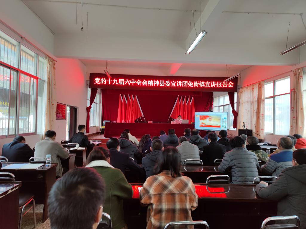 认真学习宣传贯彻党的十九届六中全会精神,是当前和今后一个时期,全镇上下的重大政治任务,也是党史学习教育的重中之重。12月30日,县委宣讲团到兔街镇开展党的十九届六中全会精神宣讲报告会,兔街镇全体干部职工、村党总支书记、中小学校长、卫生院长参加报告会。