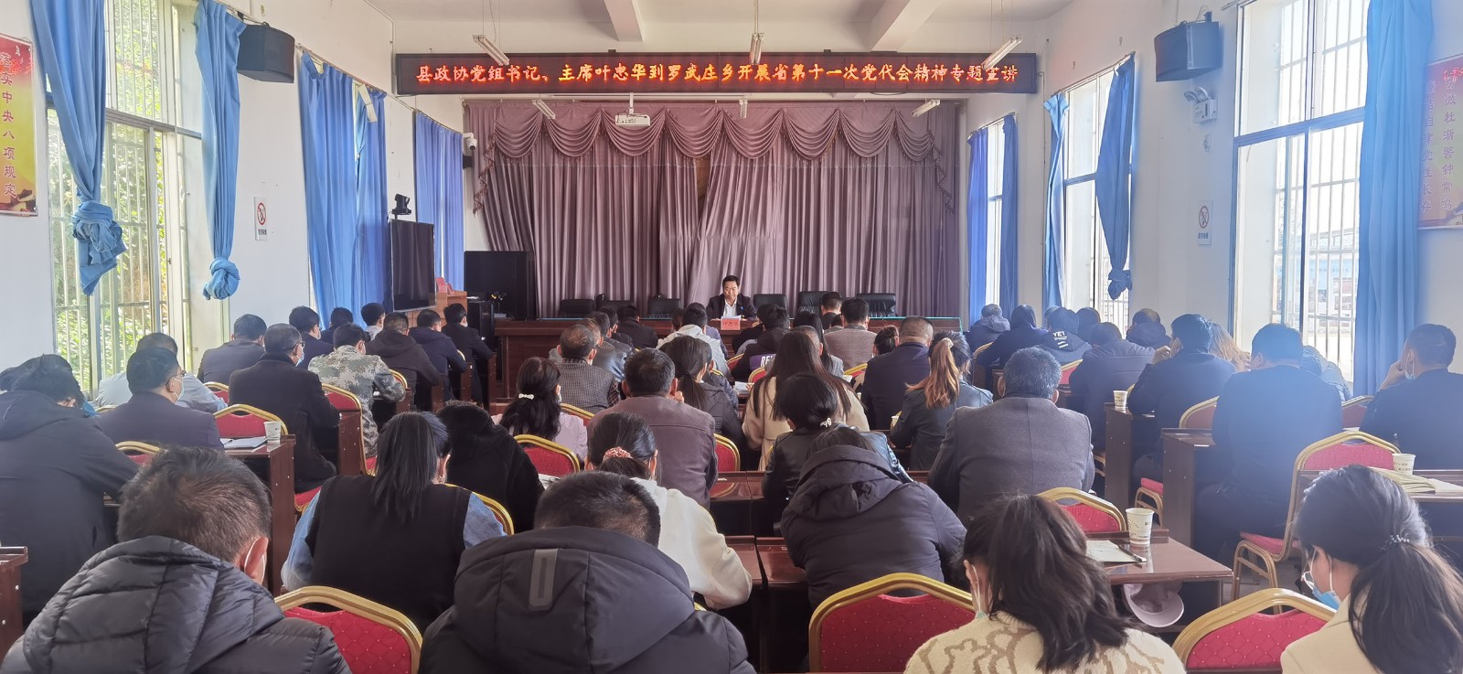 12月8日,县政协党组书记、主席叶忠华赴罗武庄乡开展省第十一次党代会精神专题宣讲报告会,乡党政班子成员、乡属全体干部职工、上管单位负责人、各村党总支书记、驻村第一书记共80余人参加学习。