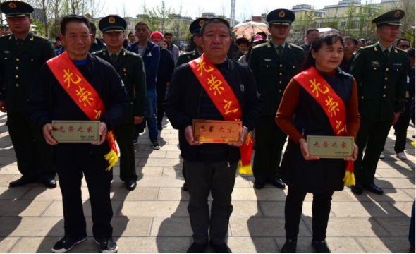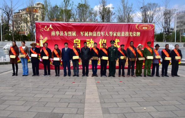 3月22日下午,南华县为烈属、军属和退役军人等家庭悬挂光荣牌启动仪式在县城龙泉广场举行,县级部门干部、驻南华部队代表、部分“三属”家庭及军休干部代表等近200人参加启动仪式,县人民政府、县人武部领导为部分烈属、军属和退役军人家庭代表授光荣牌。