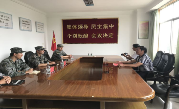 县人民政府县长何文明、在县人民武装部政委谢辉、县退役军人事务局副局长方勇的陪同下对县人民武装部进行了慰问。
