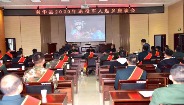 二是召开一场座谈会议。召开了“南华县2020年退役军人返乡座谈会”,组织退伍老兵观看南华发展成就专题片,邀请优秀退役军人代表和退役军人创业就业典型作事迹报告。县退役军人事务局负责人解读退役士兵安置政策及优待措施,传达学习2020年11月11日颁布的《中华人民共和国退役军人保障法》。