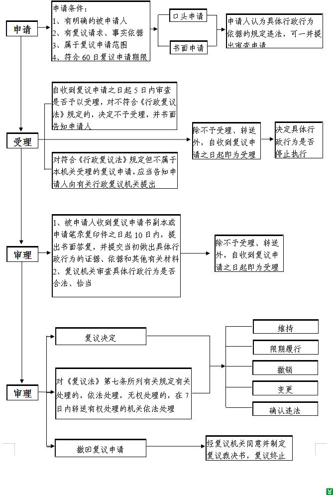四、办理基本流程 行政复议的具体流程大体分为申请、受理、审理、决定四个步骤。
