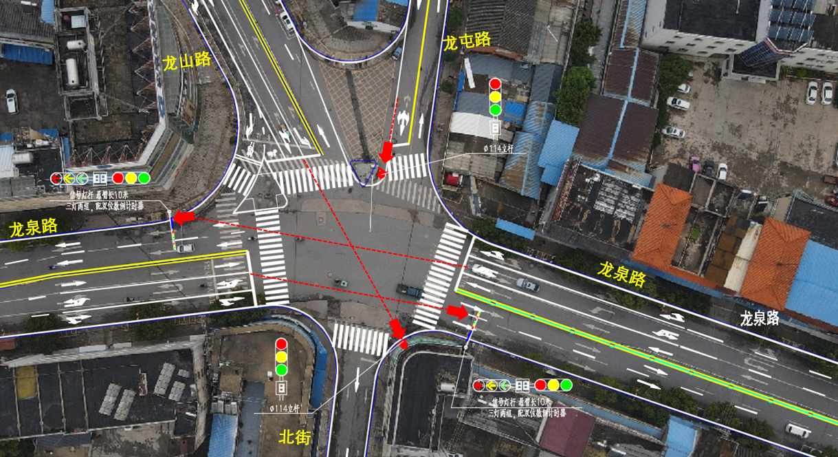 2.龙屯路驶入龙泉路、十字街、龙山路方向的车辆按龙屯路路口右侧信号灯指示通行,原北门外路口信号灯不再使用。