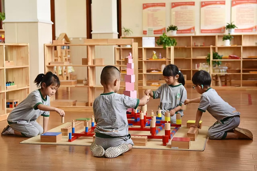蒙特梭利按照蒙氏五大领域开展教学活动,充分体现实物化、情景化、游戏化、形象化、体验化,操作化、主题化的教学特点,使孩子在自由、轻松、快乐的环境中学习、成长,注重幼儿德智体美全面发展,让幼儿学会生活,学会学习,学会工作,学会创造、学会社交,并具备适应未来社会需要的综合素质。