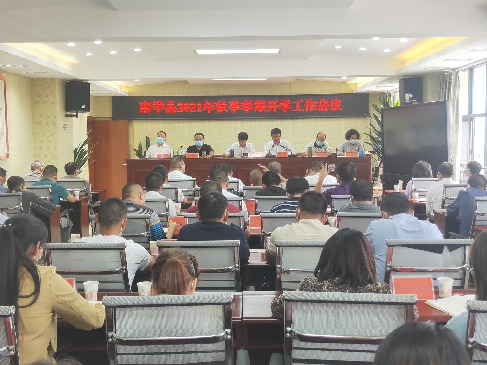 2021年8月19日,南华县教育体育局召开2021年秋季学期开学工作会议,全面安排部署学校开学各项工作。县教育体育局党政领导班子成员、各股室长(负责人)、各学校(幼儿园)书记及校(园)长共计70余人参加会议,县人民政府陈贵富副县长出席会议,并对教育工作提出具体要求。