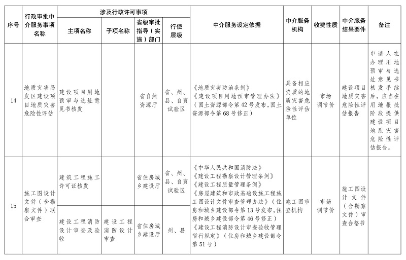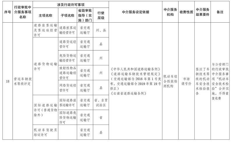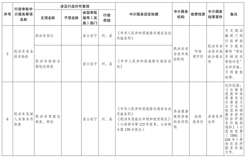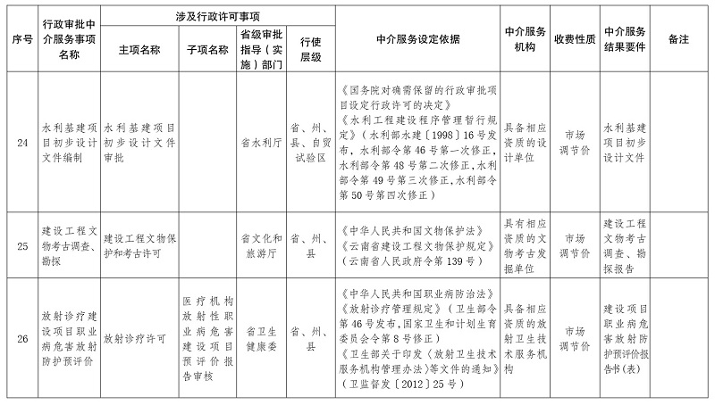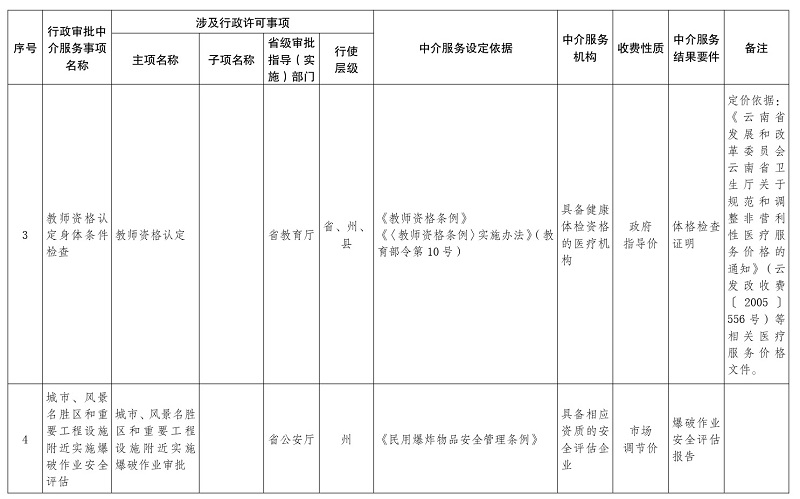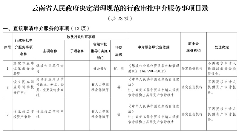 1.云南省人民政府决定清理规范的行政审批中介服务事项目录