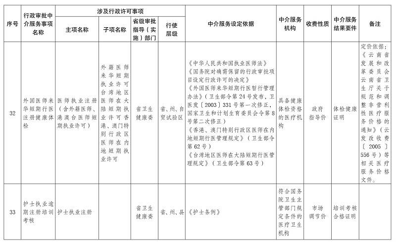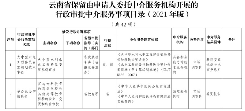 2.云南省保留由申请人委托中介服务机构开展的行政审批中介服务事项目录(2021年版)