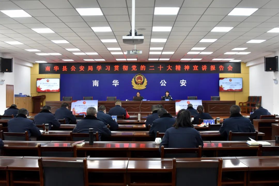 12月15日上午,南华县公安局组织举办学习贯彻党的二十大精神宣讲报告会,邀请县委宣讲团成员、县委党校高级讲师孙学祥为全体民警授课。