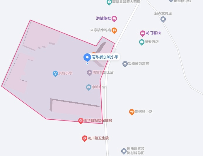 南华县东城小学:位于南华县城古城路30号。线路一:可乘坐南华4路公交,到个私街站下车,向北走约100米即到。线路二:可乘坐南华8路(附1线)公交,到个私街站下车,向北走约100米即到。