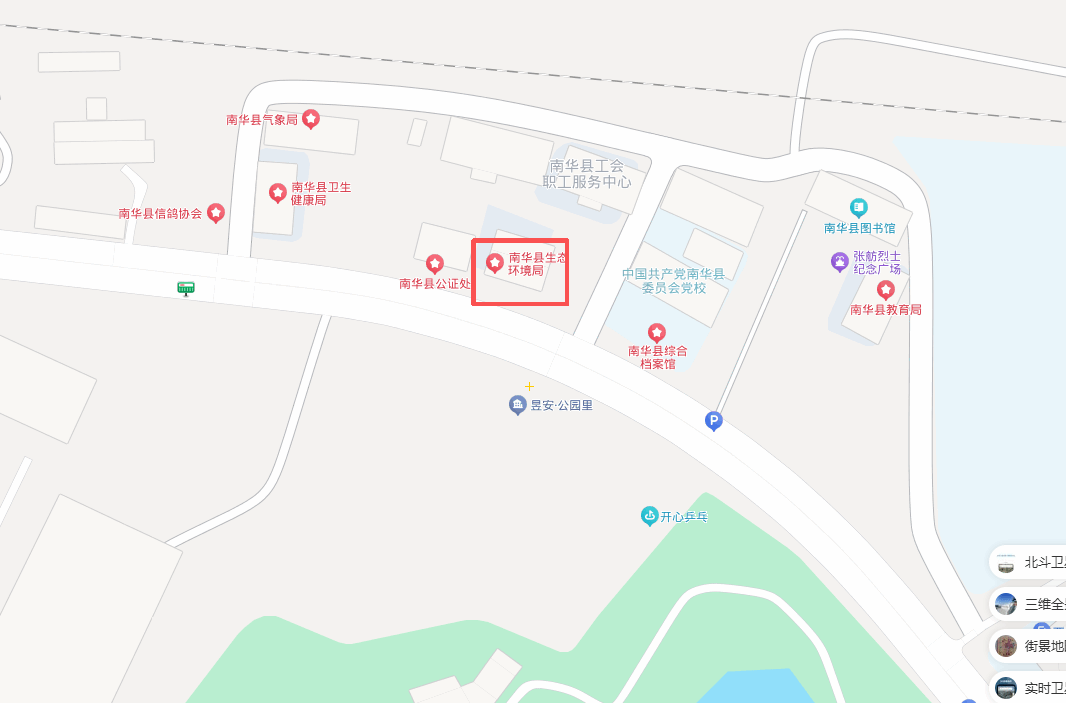楚雄州生态环境局南华分局生态环境监测站位于南华县龙川镇民中路北侧,县总工会西侧,导航“楚雄州生态环境局南华分局”或乘南华8路附2线公交即可到达。监测站位于楚雄州生态环境局南华分局办公楼1至3楼,日常业务办公室在302。
